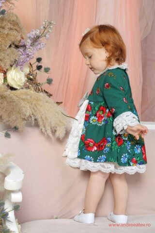 Rochiță din raiat brodat cu flori, bleumarin – 2 piese