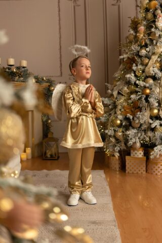Costum de Serbare Îngeraș pentru băieței – auriu