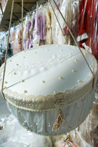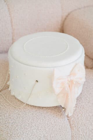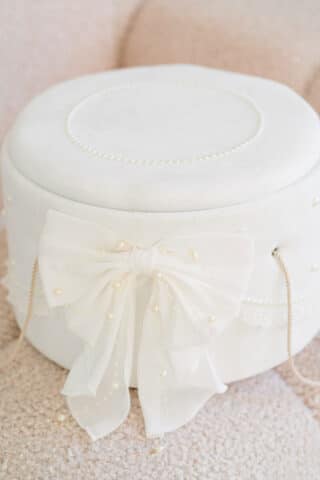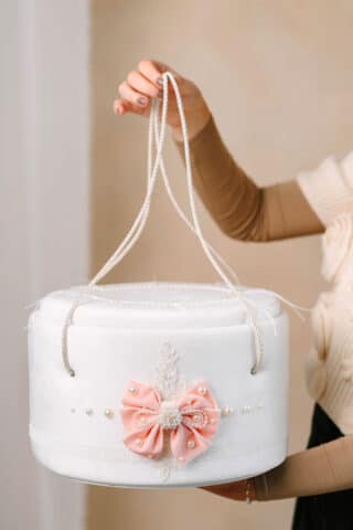 Cufăr botez FLOARE buretat din catifea pufoasă – ivoire
