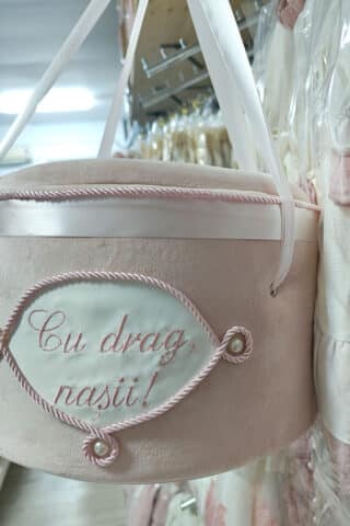 Pachet botez cu -20% REDUCERE – Cufăr buretat FUNDĂ roz+ Trusou PureBebe