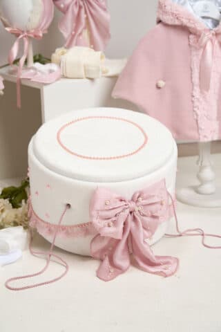 Cufăr botez COLOR buretat din catifea pufoasă – roz