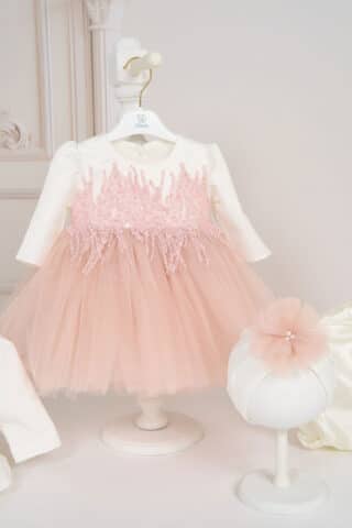 Rochiță Lilibet – roz pudră (mânecă trei sferturi)