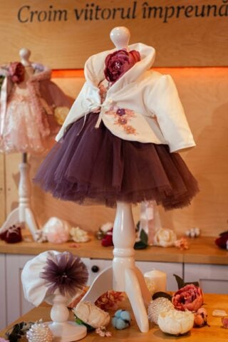 Costum național de botez pentru fetițe cu jachetă – 6 piese