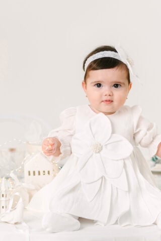 Rochie Fleur, set elegant botez cu floare supradimensionata