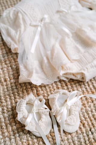 Rochie Fleur, set elegant botez cu floare supradimensionata