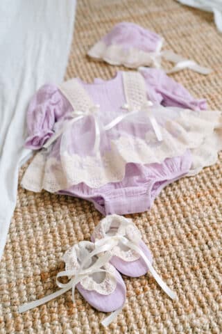 Set Boem Natural 5 piese (capă, rochiță, bonetă, bentiță, botoșei)