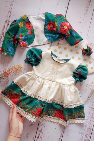 Rochie Petal cu guler alb – verde (3-5 ani)