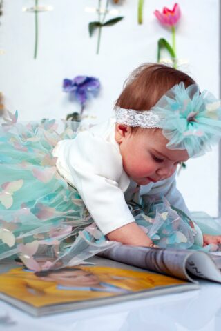 Rochiță fantezie, cu fluturi aqua 3D – 3 piese