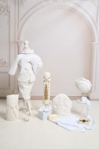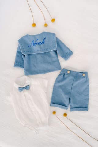 Set botez 5 piese din in premium, elegant și respirabil.