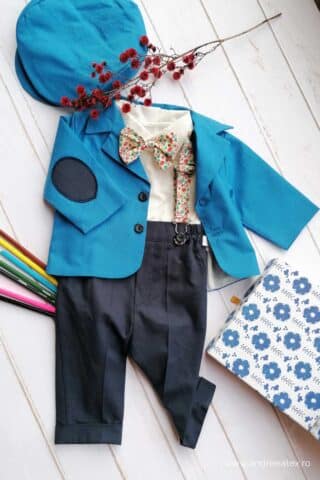 Costum botez cu sacou slim-fit din catifea – 5 piese
