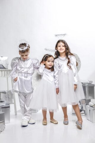 Costum de Serbare Înger pentru fetițe – alb argintiu