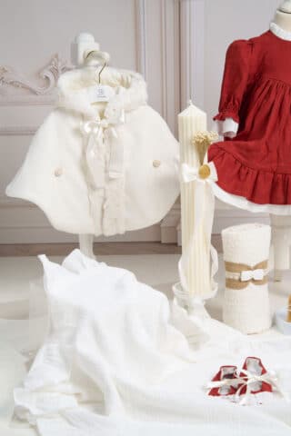 Set esențial botez Petit Coeur și Capă + Trusou + Lumânare – ivoire