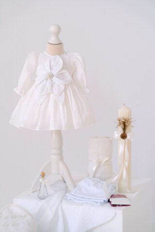 Set complet botez (trusou) – Fleur – ivoire (mânecă lungă)