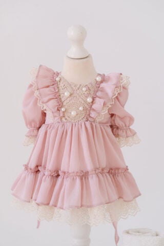 Set complet botez (trusou) – Miss Coco – roz (mânecă lungă)