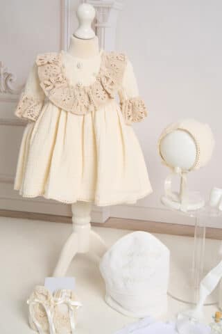 Set esențial botez Pavlova și Capă + Trusou + Lumânare – ivoire
